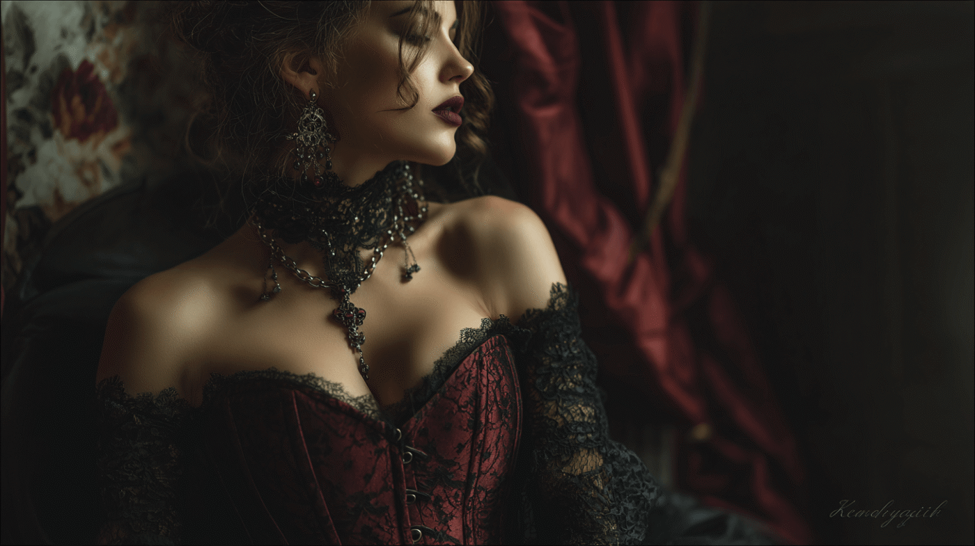 Grab a black or deep wine-red brocade corset, pair it with a long lace skirt and tall boots for a powerful dark romance look.