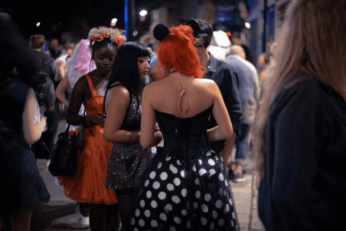 Wear a polka dot corset with high-waisted leather pants or a pencil skirt, or with a short denim skirt. Match with sparkly accessories + sexy high heels. This look is the ultimate Party Queen style!
